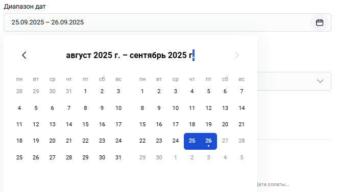 Если у пользователя есть аффилированные продавцы, выбор продавца становится доступным в выпадающем меню Продавец.