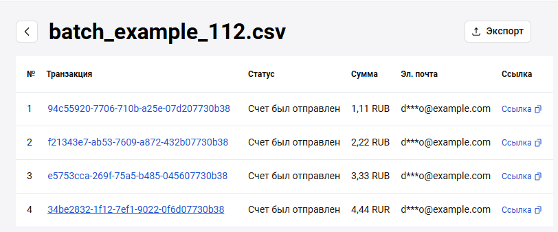 | Статус | Статус операции |