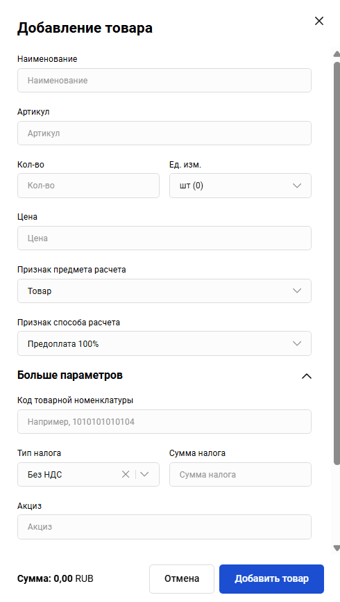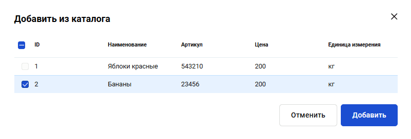 После загрузки каталога товаров или товара/ов отдельно вы сможете добавлять товары из каталога при выставлении счета на оплату. Подробнее о том, как добавлять товары из каталога, смотрите в разделе Счет на оплату.