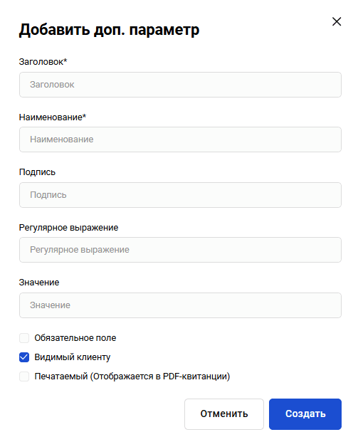 | Дополнительный параметр | Дополнительный атрибут пользователя, который будет передаваться оператору фискальных данных |
