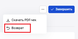 Проверьте сумму возврата. Вы можете вернуть всю сумму или указать меньшую сумму. Нажмите Подтвердить. Заказ перейдет в статус Возврат. Если на предыдущем шаге вы решили вернуть меньшую сумму, вы можете делать возвраты до тех пор, пока не будет возвращена вся сумма