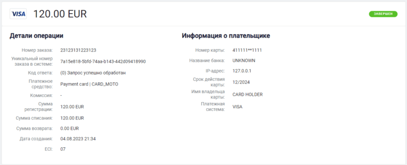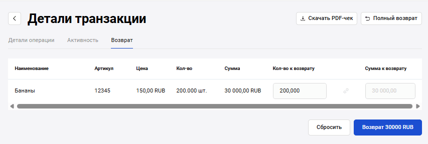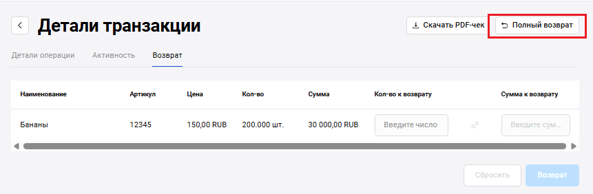 Полный возврат по транзакции
