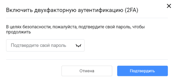 Изменение пароля API. Для этого нажмите Изменить пароль API и подтвердите действие в открывшемся окне: